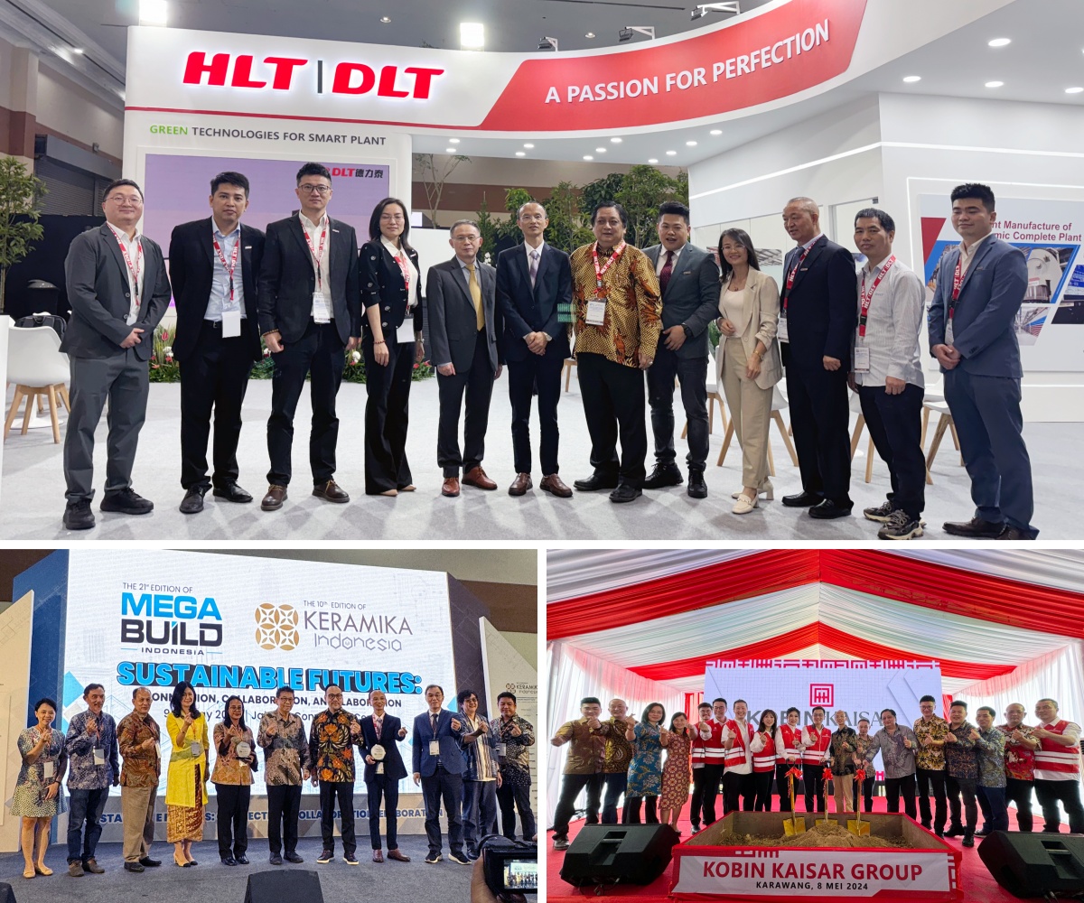 On May 8, Mr. Yang Xuexian, Managing Director of Keda Industry, also Managing Director of HLT|DLT, and Mr. Marco Guan, Deputy Managing Director of HLT|DLT, were invited to the groundbreaking ceremony for the new project of Kobin Kaisar, a well-known local ceramic manufacturer, having drawn much attention of the entire Indonesian ceramic industry. The project equipment is supplied by HLT|DLT, including body preparation - pressing - firing – after-kiln processing as a turnkey project, of which the major product sizes are 600*600mm, 600*1200mm and 800*800mmm high-end glazed vitrified tiles. With a smooth progress in all aspects, the project will soon come to its full swing in the construction and is expected to be completed in early 2025.