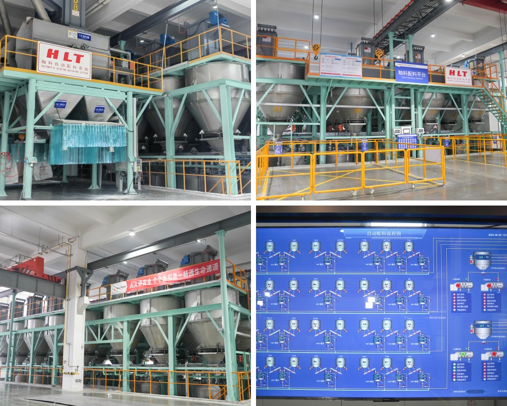 Once the raw materials enter the warehouse, the glazing batching system enables fully automated processes such as automatic measurement, proportioning, material feeding, and mixing. With a high level of automation and precise control, it efficiently handles large-scale production, accurately weighing and blending various glaze ingredients to ensure stable composition and performance. The system operates in a fully sealed environment, eliminating leaks and contamination.