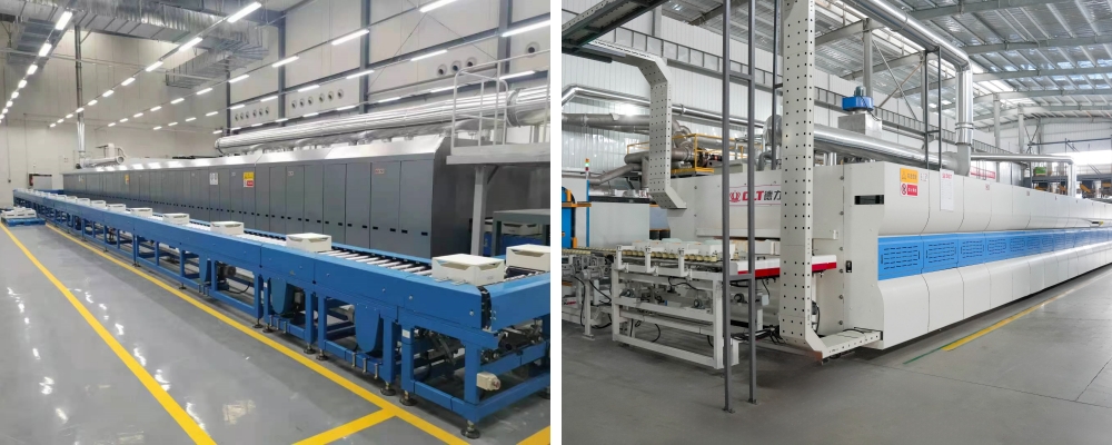 These kilns are equipped with patented technologies such as the OCE Optimized Combustion Energy-Saving System and the KHI Insulation Energy-Saving System. They also feature a high-precision digital flow control system that accurately adjusts the air-fuel ratio for optimal combustion, improved thermal efficiency, and broader automatic temperature control range. DLT Technology's sanitary ware tunnel kilns can achieve an energy consumption as low as 700 kcal/kg.c, while its roller kilns for tableware can operate at just 950 kcal/kg.c — delivering significant cost savings for its customers.