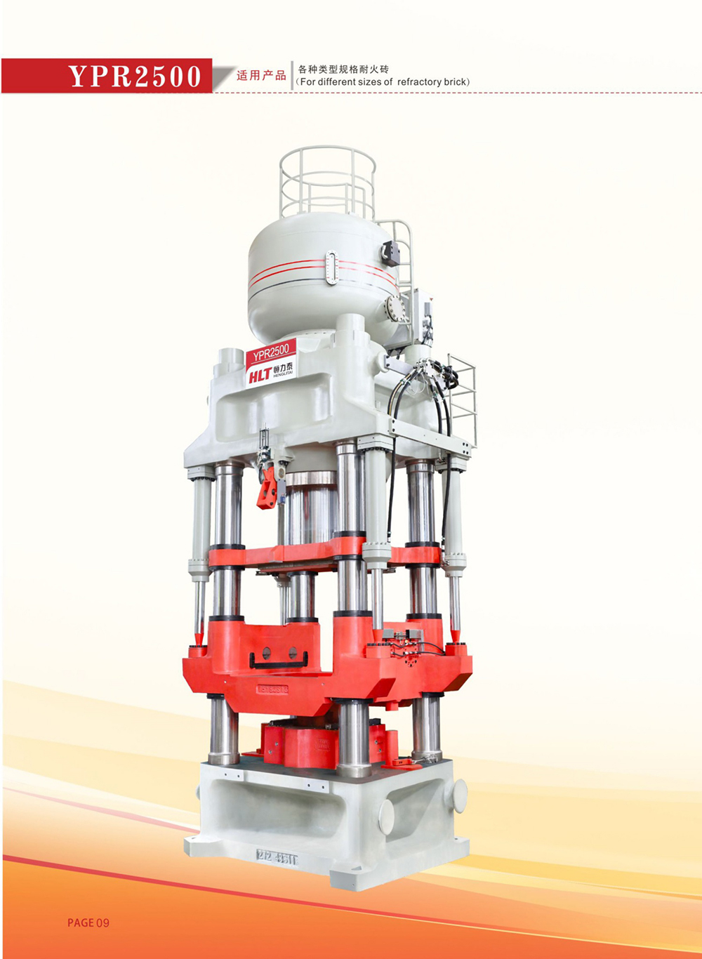 YPR系列耐火砖自动液压机专用于耐火砖干法压制成型,是集机、电、液、气、计算机一体化的高科技含量产品,由主体结构、液压系统、喂料系统、电气控制系统、模具装卸机等组成,能自动完成压制过程中的布料、压制、脱模、夹砖以及喷油等工作。