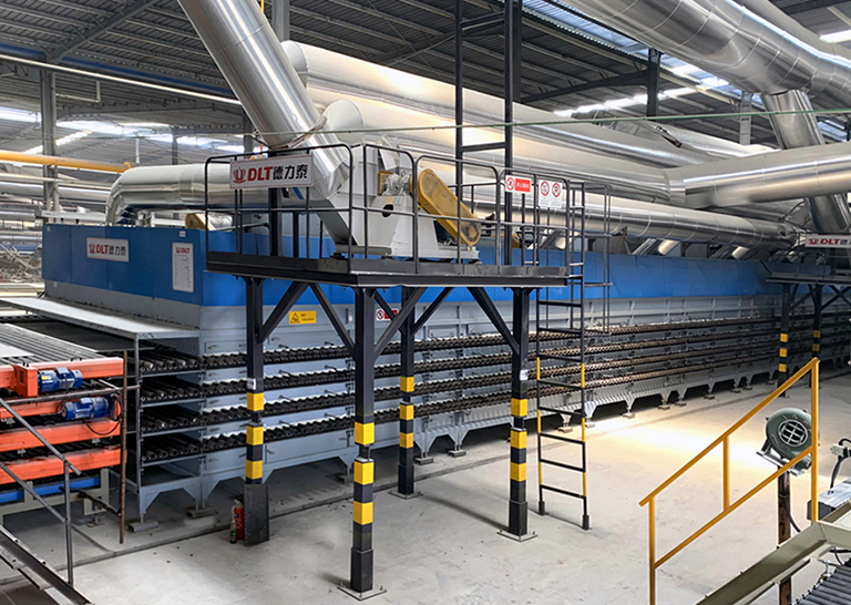 多层自循环干燥器采用了多个独立循环模段、大内腔设计、层高合理、管路设计巧妙、热气输送科学,全自动程序控制。独特双出口供热风和自循环结构,稳定性能好、机械裂少、砖坯规律性强,适应规格众多、干燥周期跨度大的不同产品的干燥,正常生产只需利用窑炉冷却余热,无需额外补充热源,为工厂大限度节约能源消耗及场地。