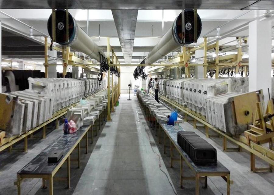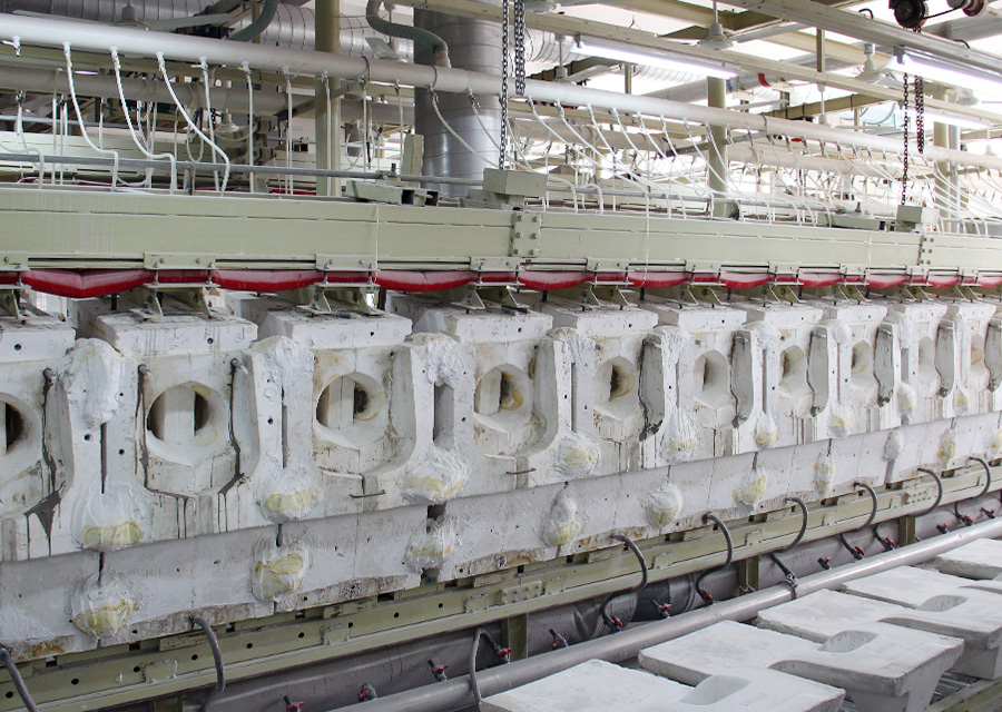 整体起吊成型线适用于连体、分体、水箱产品的注浆成型,具备底模一次性提升,自动注浆,压缩空气脱模,气动翻坯等功能。整体起吊浇注线采用石膏模具,具备自动注浆、吸浆、固化等功能,适用于复杂产品结构及小批量生产,确保产品的坯体厚度和功能稳定合格。