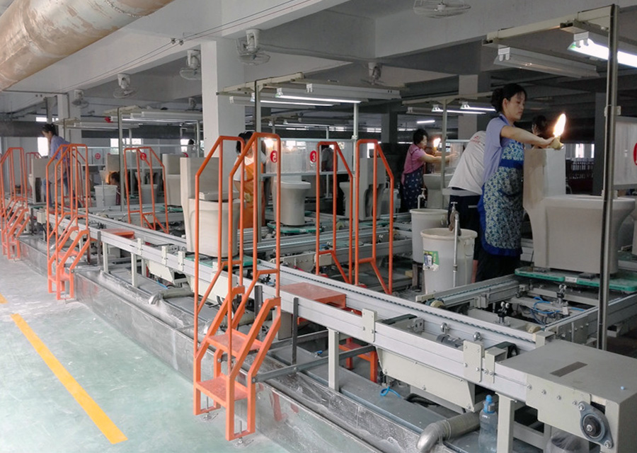 检修线用于半成品检修的自动化输送,可直接与干燥系统对接产品自动分配到各个检修工位,定位操作,易于管理;不合格的产品经信息检测可自动传输到指定位置;整线采用湿修处理,操作过程不产生粉尘,节能降耗,减污增效。