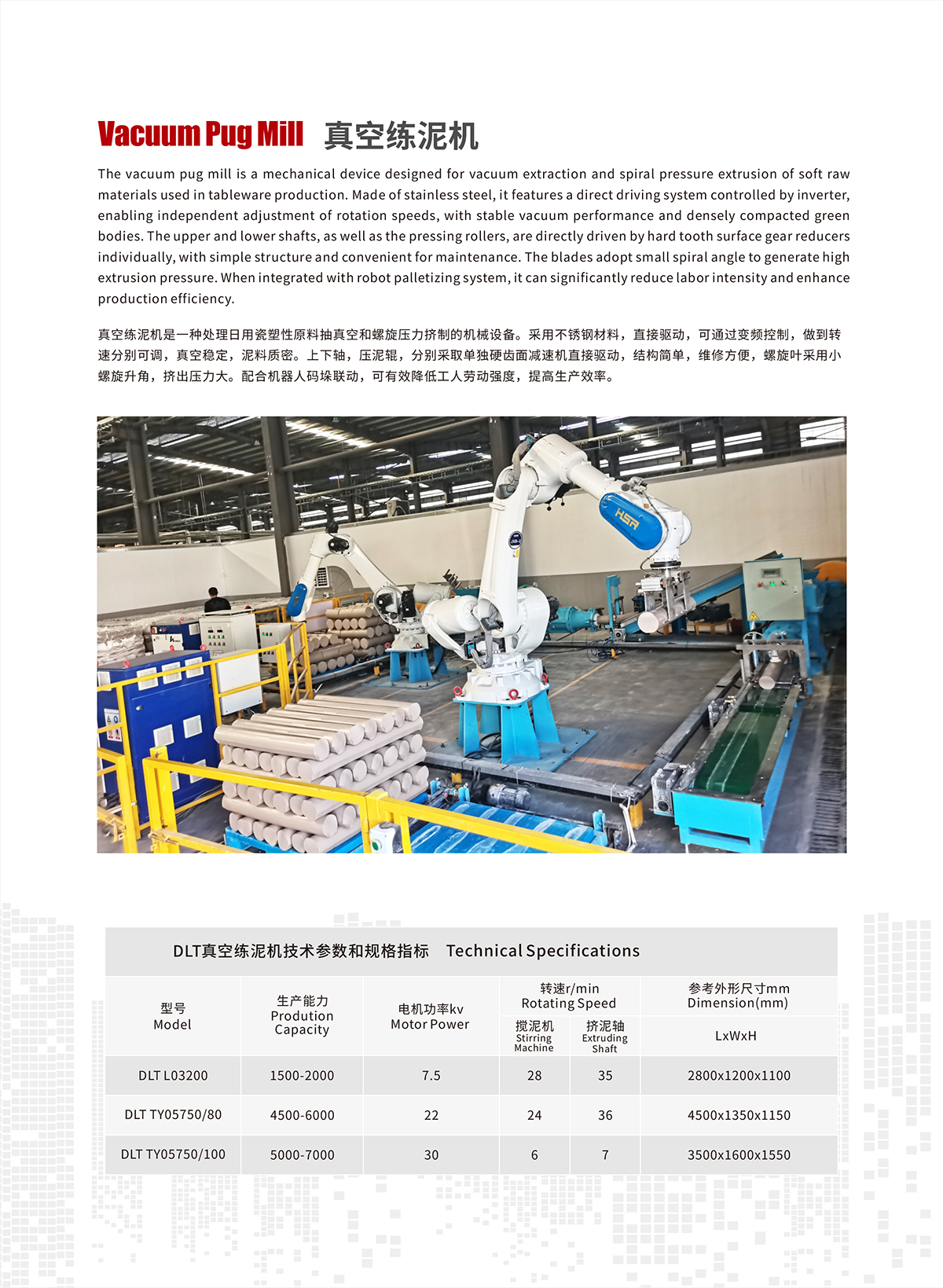 The vacuum pug mill is a mechanical device designed for vacuum extraction and spiral pressure extrusion of soft raw materials used in tableware production.